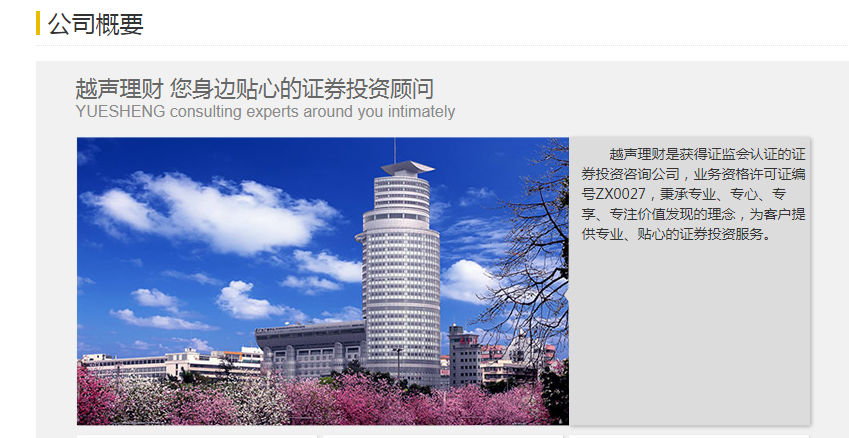 公开信息显示,广州越声理财咨询有限公司成立于1997年,服务内容包括投资的品种选择、投资组合以及理财规划建议等。