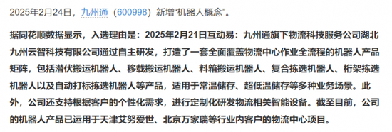 2022年8月,九州通(600998)发布董事会决议公告称,因经营发展需要,为进一步拓展数智化科技物流解决方案、供应链一体化解决方案、信息与设备技术研发等业务,公司拟在原经营范围基础上增加“智能机器人的研发”等经营范围。