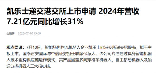 作为全球少数掌握全栈式智能场内物流技术的领军企业,今年6月25日,浙江凯乐士科技集团顶着“全栈式智能场内物流机器人第一股”的光环正式向港交所递出IPO申请。